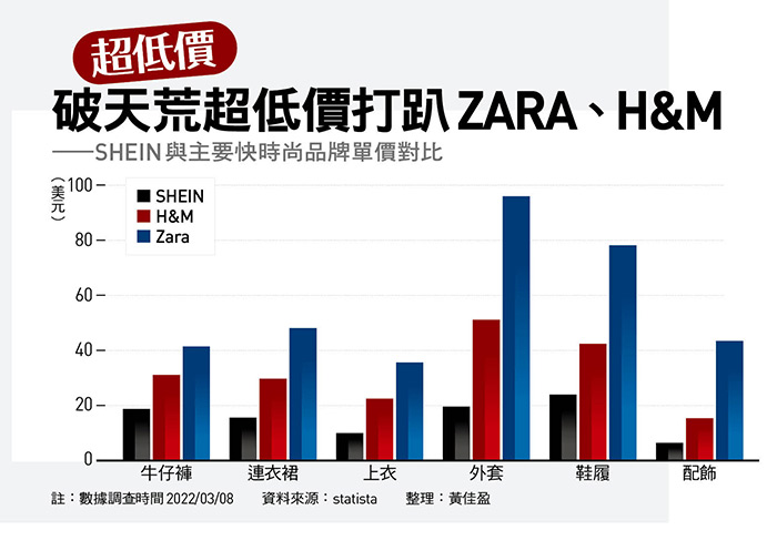 究竟,希音的魅力何在?不少分析認為,主要原因有二。第一,是希音的「破天荒超低價格」,讓其他如ZARA、H&M等傳統主打價格優勢的快時尚品牌,各個相形見絀。「它的東西便宜到不可置信。」一位國內紡織業總經理向本刊表示。