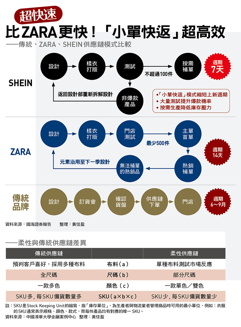 | 傳統、ZARA、SHEIN供應鏈模式比較 |