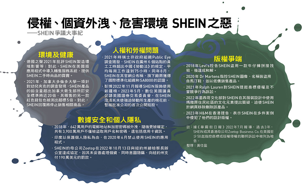 只是,在強勢進軍歐美市場的同時,外界對希音的質疑之聲也從未間斷。批評聲音來自多個面向,有對希音侵害勞動人權的質疑,有對希音侵權抄襲的指控,另外,則是希音近年一連串涉及環保等ESG議題的相關爭議。